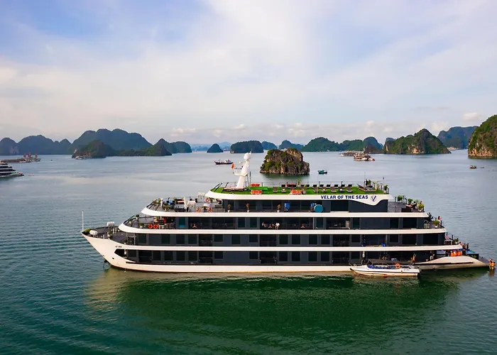 يقع فندق Velar Of The Seas في منطقة Tuan Chau في ها لونغ على بعد 42 دقيقة بالسيارة من مطار كات باي الدولي. بالإضافة إلى ذلك، ستجد الواي فاي في جميع أنحاء الملكية في مكان الإقامة في ها لونغ.